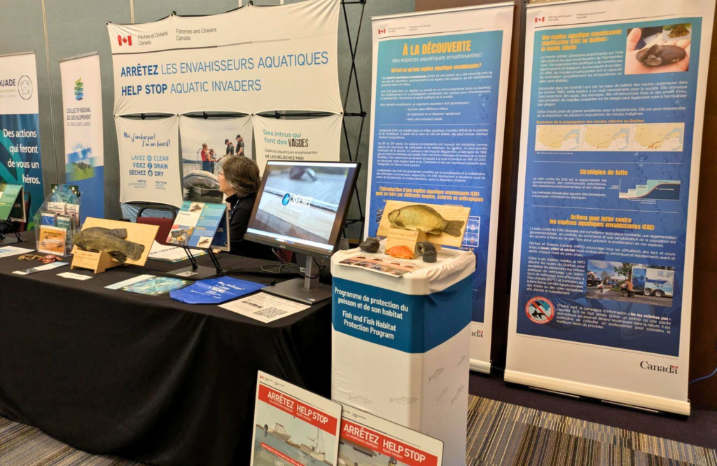 Photo : Kiosque de Pêches et Océans Canada au Forum régional sur les espèces envahissantes © CRD