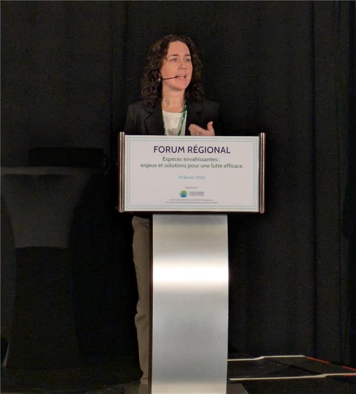 Photo : Mélodie Mondor, directrice générale du CRD, au Forum régional sur les espèces envahissantes © CRD
