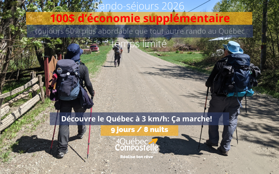 Il est encore temps de s’inscrire et participez à l’événement Découvre le Québec à 3 km/h : Ça marche ! qui a lieu en ligne sur Facebook du 16 au 25 février à midi (18h en France) en vous inscrivant ici : Découvre le Québec à 3 km/h. C’est totalement gratuit! Venez en apprendre plus sur ce qu’a à offrir chacune des régions et rencontrer les intervenants passionnés du milieu touristique et connaisseurs de leur région.