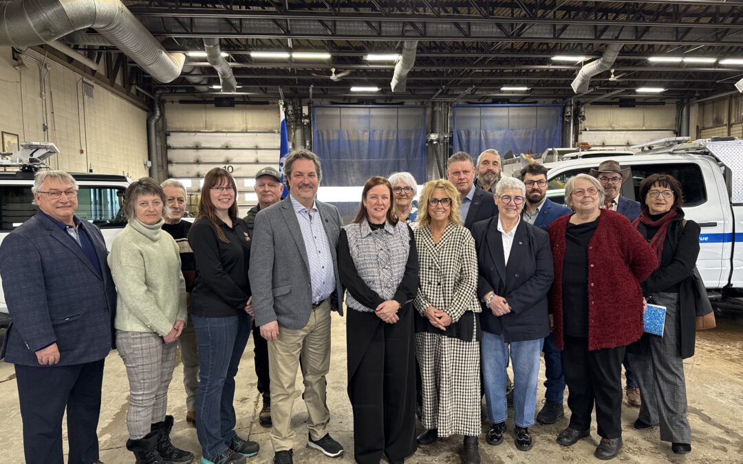 Photo : Amélie Dionne et Mathieu Rivest, entourés d’élus du Bas-Saint-Laurent, lors de l’annonce. (Photo courtoisie)