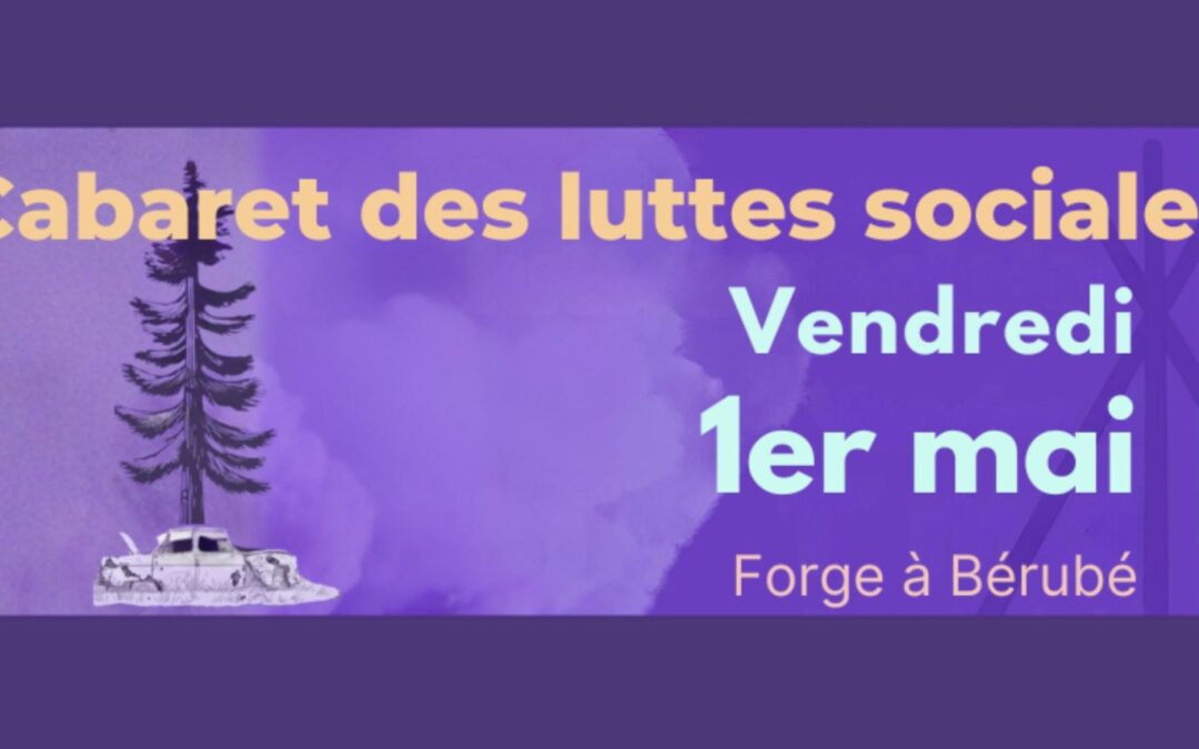 (Alexandre D’Astous)-À l’occasion de la Journée internationale des travailleurs et travailleuses, le vendredi 1er mai, le comité du Cabaret des luttes sociales est enchanté d’annoncer la cinquième présentation de son événement qui allie une fête de quartier et un cabaret artistique à la Forge à Bérubé de Trois-Pistoles.
