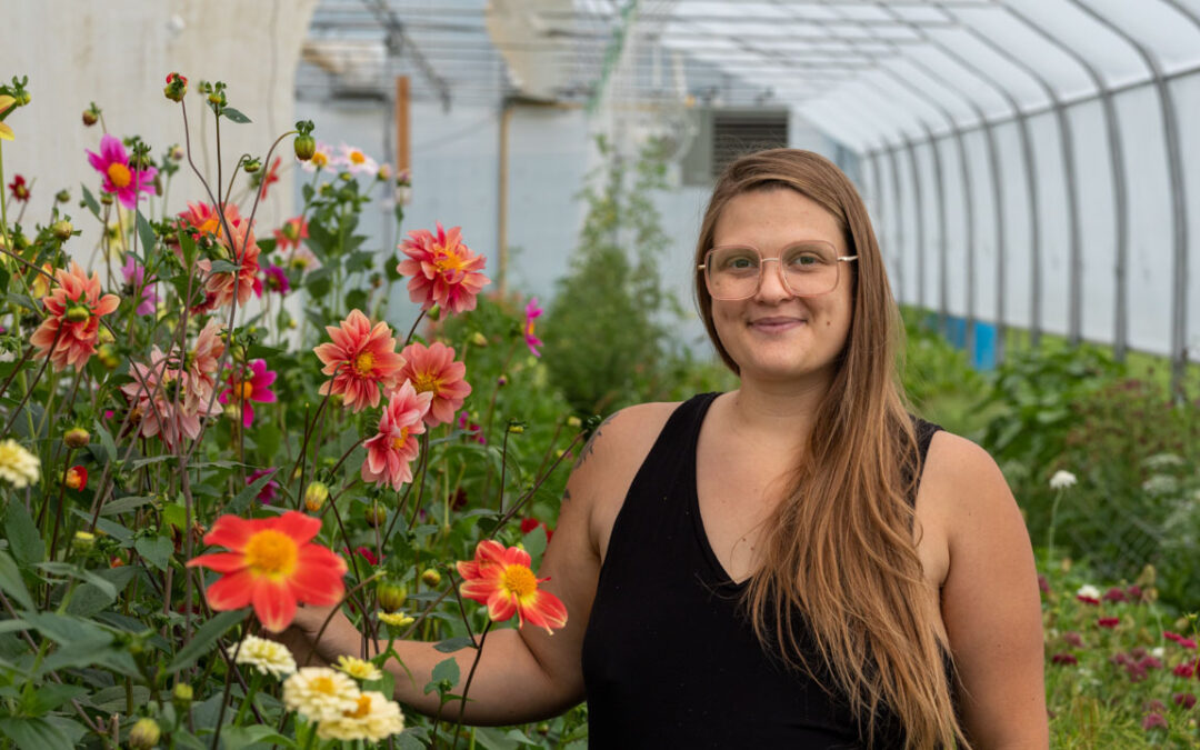 Photo : Laurence Ouellet cultive des fleurs depuis 2021 au Motel agricole des Basques. (Photo courtoisie)